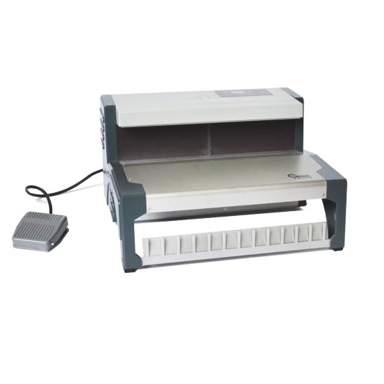 Elektrický robustný stolový dierovací a viazací stroj na plastové hrebene