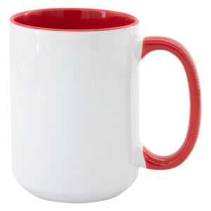 Keramický biely hrnček pre sublimáciu so zhodným priemerom ako štandardný hrnček, ale s vyššou tlačovou plochou a robustným uchom.