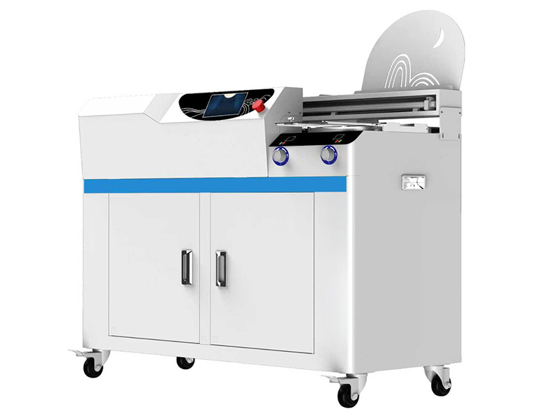 Stroj je vybavený ovládacím panelom s integrovaným počítadlom cyklov a autodiagnostikou, na ktorom obsluha pohodlne vykonáva nastavenia stroja. Nanášanie lepidla je zabezpečené dvoma valcami a jedným stieracím a samostatným systémom bočného nanášania lepidla.