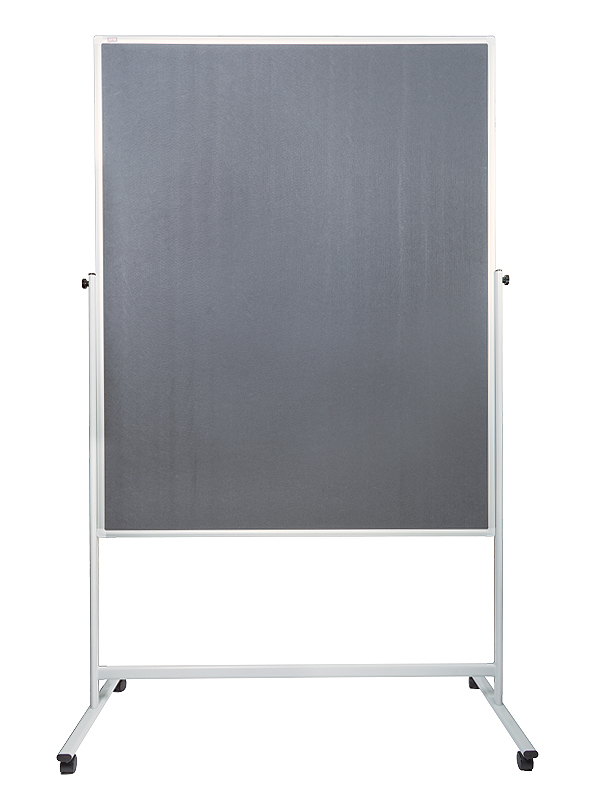 Moderačná tabuľa ARTA so šedým filcovým povrchom v obojstrannom prevedení, hliníkovým rámom, stojanom lakovaným na šedo a pojazdovými kolieskami pre jednoduchú manipuláciu. Kvalita, elegantný dizajn a potrebná robustnosť, ktorá je dôležitá pre stabilitu tabule.