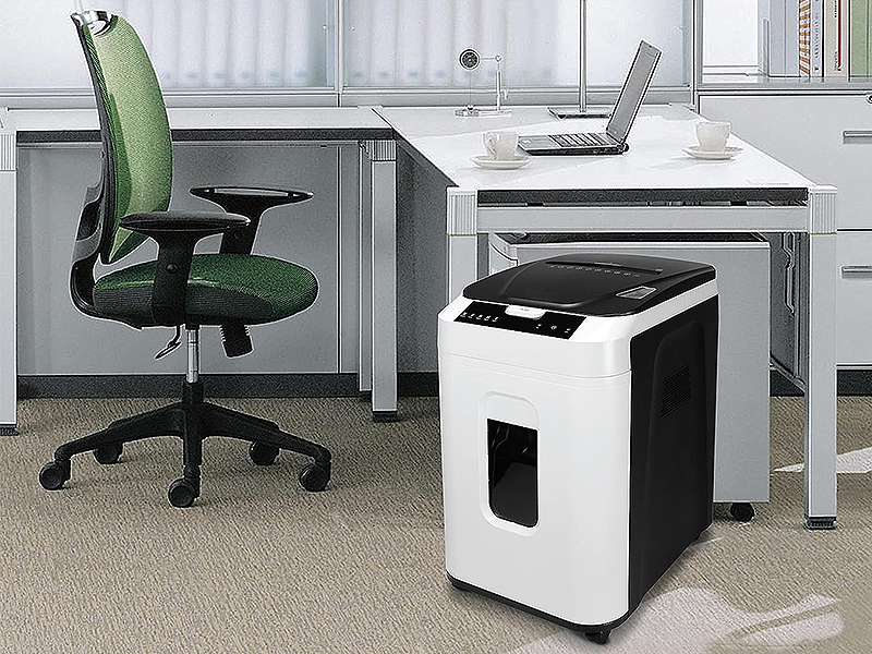 Výkonný skartovač AT-180AF s automatickým podávačom, stupňom utajenia DIN P-5 a tichou prevádzkou.